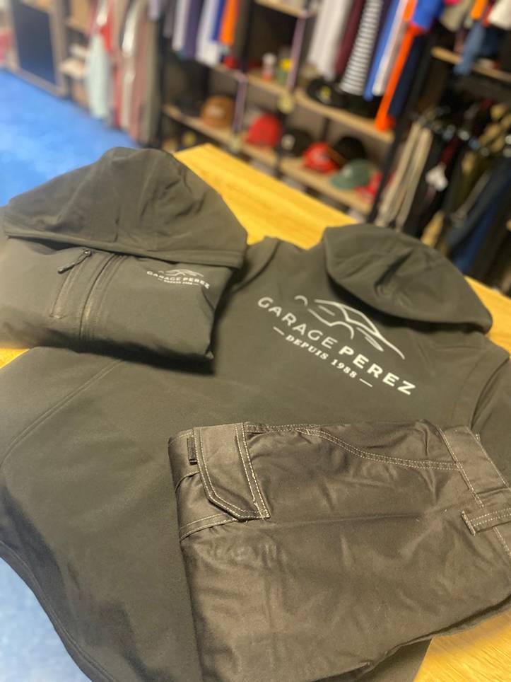 Ce projet de broderie et de marquage textile a été pensé pour valoriser l’image du garage tout en garantissant confort, résistance et visibilité au quotidien.